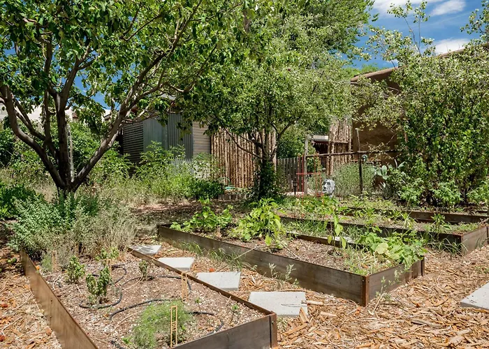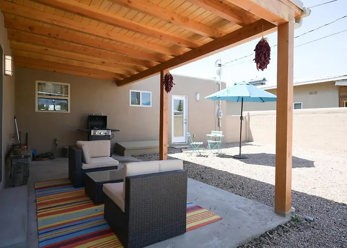 728 Gomez RoadVilla Casita Gomez- Courtyard - Quiet - Railyard - 1Br à Santa Fé propose un jardin pour une expérience agréable. Il est situé à environ 5 à pied de Santa Fe Farmers Market.Voir les détails+Plus de détailsVoir les tarifs - Dos Hermanas Casita 5 Downtown Courtyard Patio